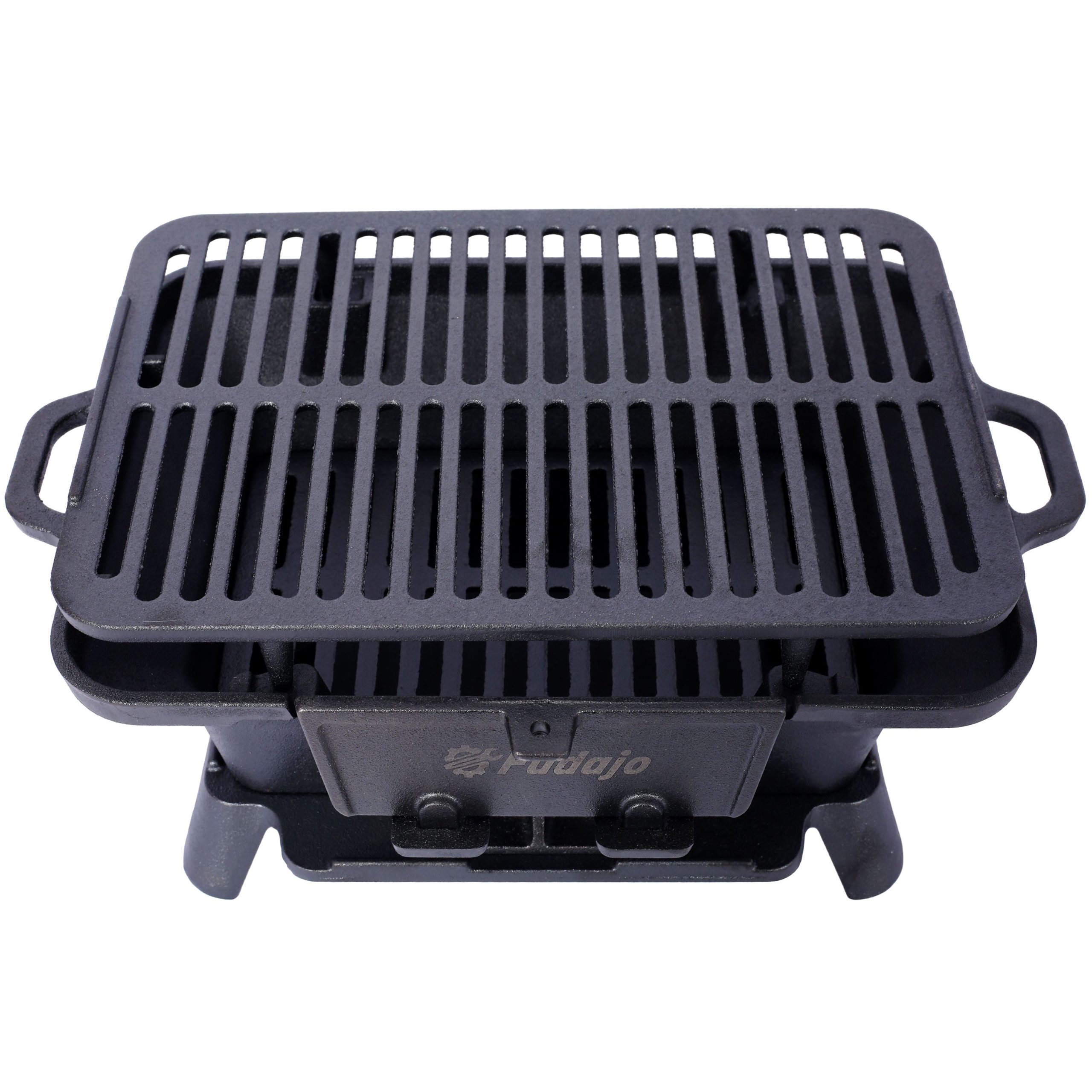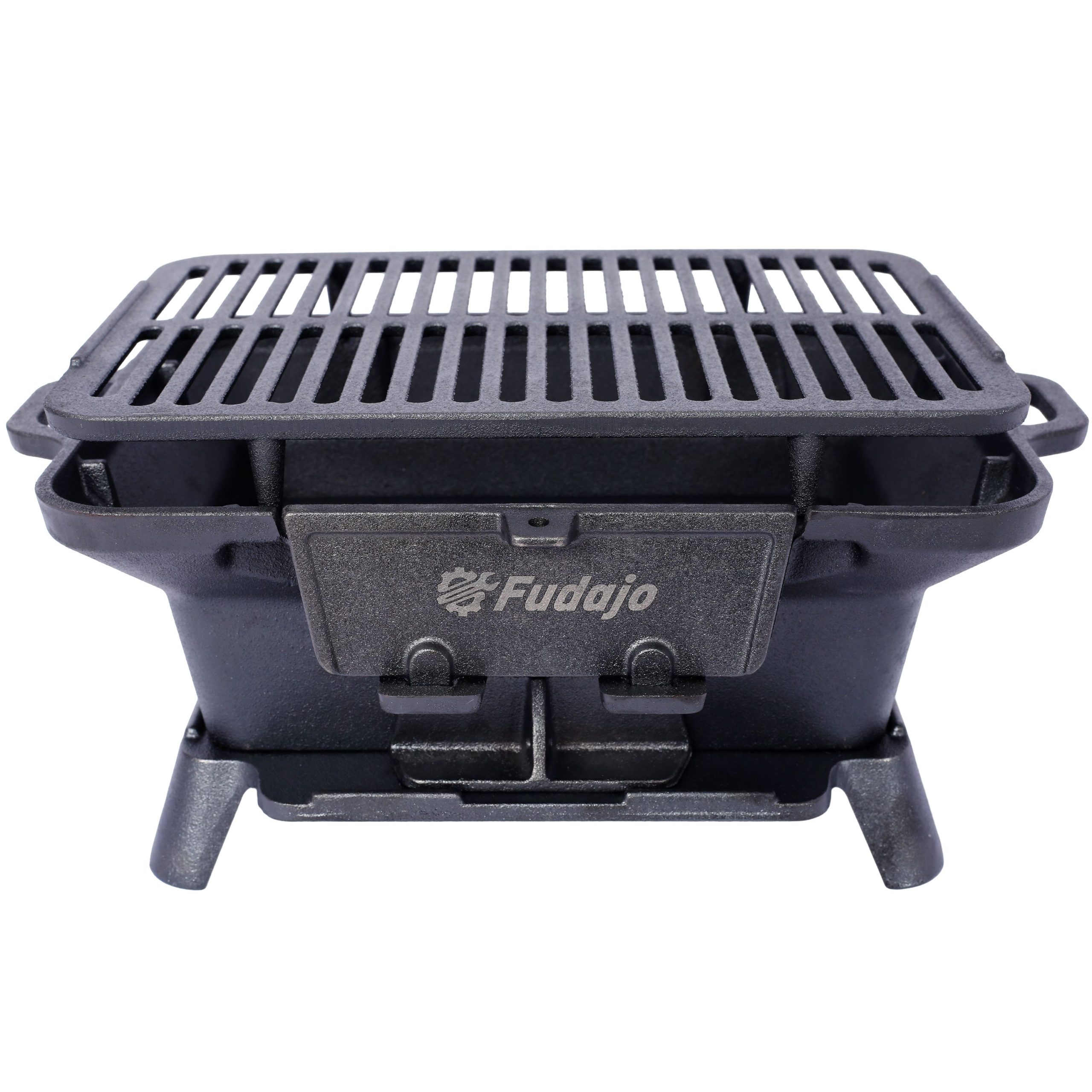 Oval Cast Iron Grill Outdoor, Portable Charcoal Grill and Tabletop Cast Iron Skillet – 100% Cast Iron, Enameled, Durable, Small Charcoal Grill, Camping Stove, Hibachi Grill
